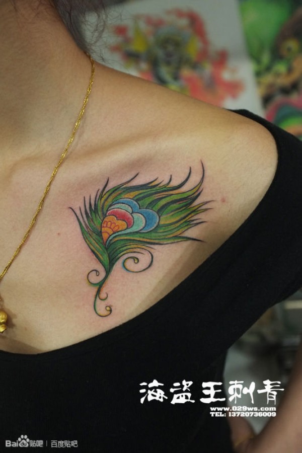胸部好看的孔雀羽毛纹身_小清新纹身图案大全_纹身图吧