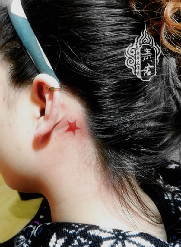 一款耳后个性小清新五角星纹身图案_小清新纹身图案大全_纹身图吧