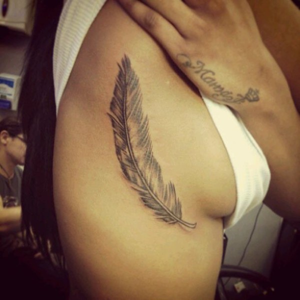 分享一款时尚好看的侧腰羽毛纹身图案_小清新纹身图案大全_纹身图吧