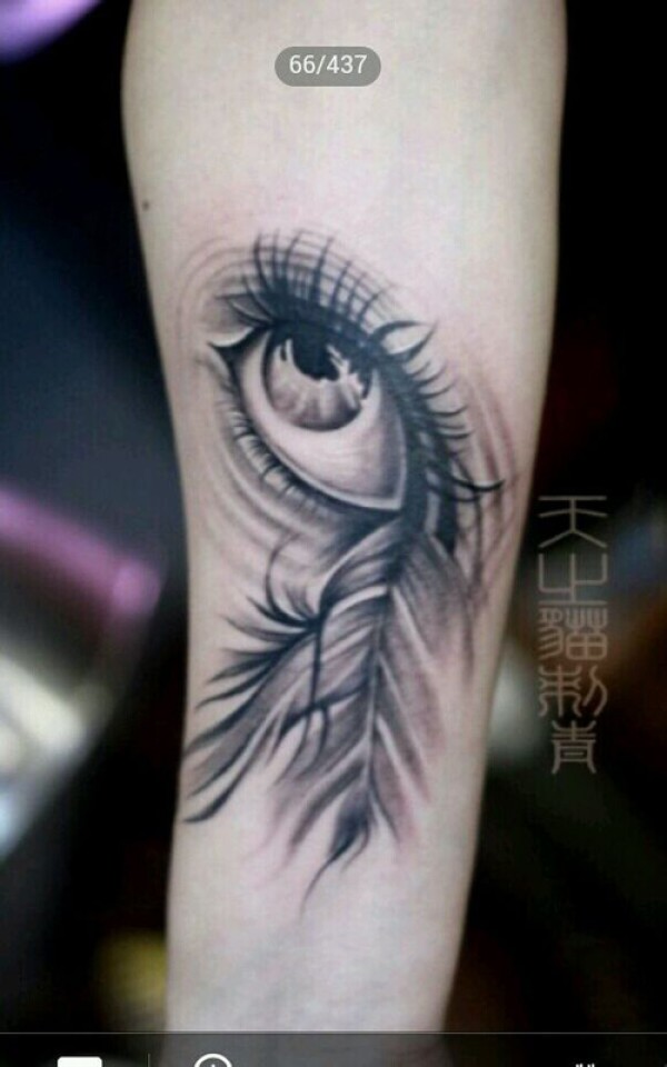 一款黑灰眼睛羽毛纹身图案_小清新纹身图案大全_纹身图吧