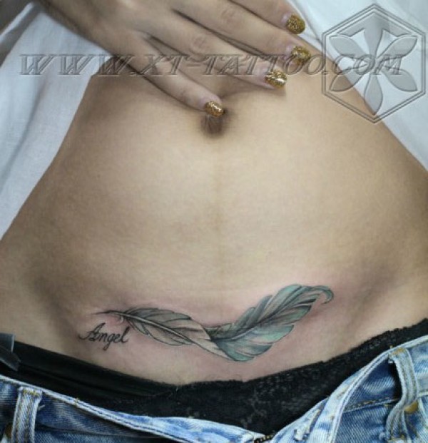 美女腹部好看的羽毛纹身图案_小清新纹身图案大全_纹身图吧