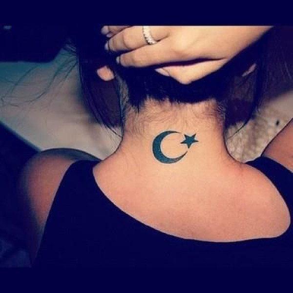 美女一款脖子后小清新月亮纹身图案_小清新纹身图案大全_纹身图吧