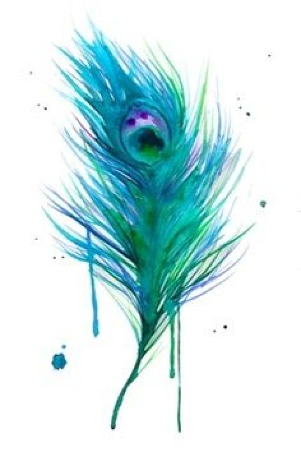一款经典蓝色羽毛纹身图案_小清新纹身图案大全_纹身图吧