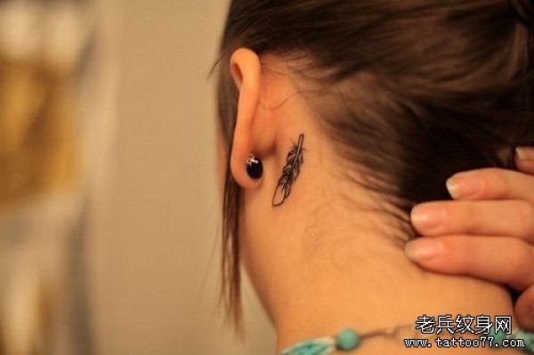 推荐一款耳后羽毛纹身图案_小清新纹身图案大全_纹身图吧