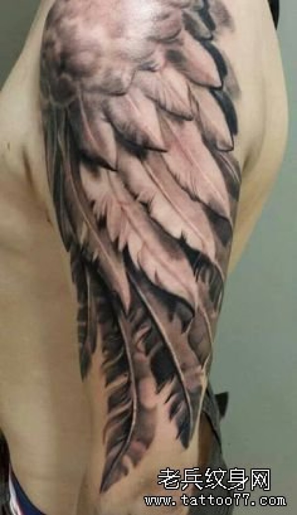 推荐一款超酷的大臂羽毛纹身图案_小清新纹身图案大全_纹身图吧