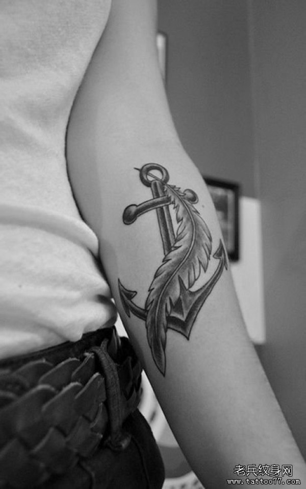 一款船锚羽毛纹身图案_小清新纹身图案大全_纹身图吧