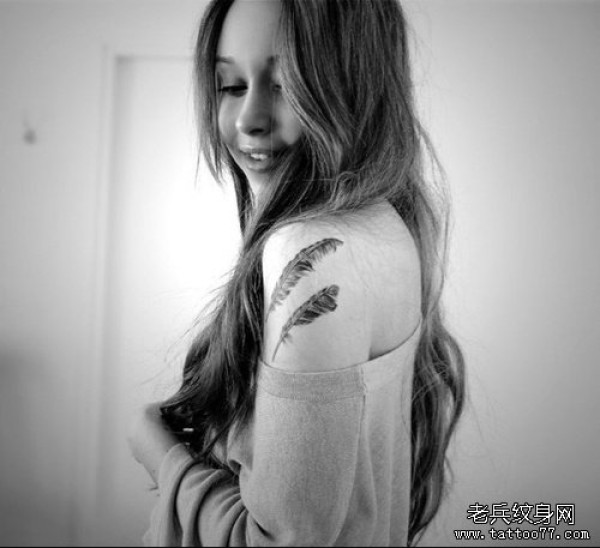 推荐一款大臂羽毛纹身图案_小清新纹身图案大全_纹身图吧