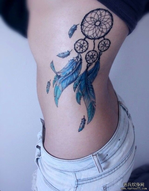 腹部彩色羽毛纹身_小清新纹身图案大全_纹身图吧