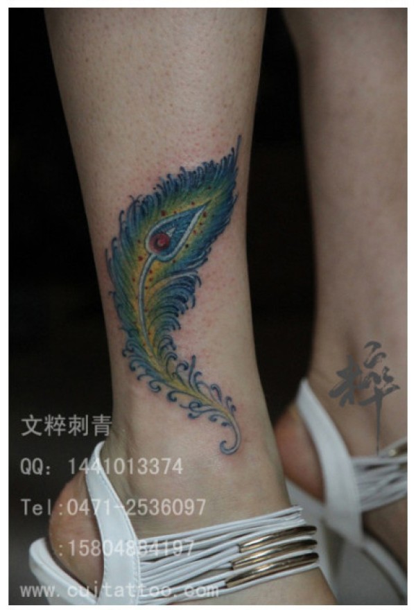 脚背彩色小羽毛纹身_小清新纹身图案大全_纹身图吧