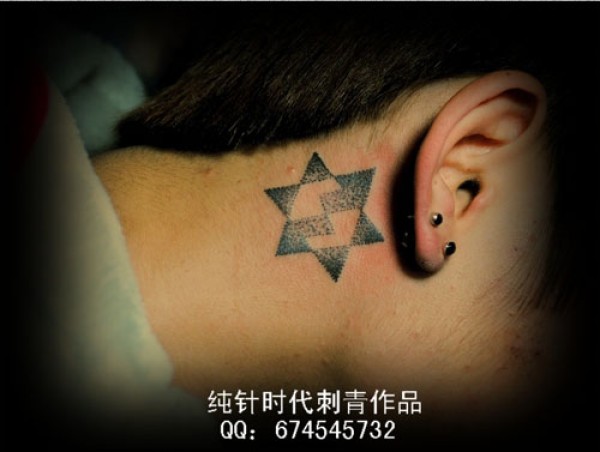 耳部时尚的点刺六芒星纹身图案_小清新纹身图案大全_纹身图吧