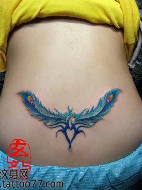 美女腰部漂亮的彩色羽毛纹身图案_小清新纹身图案大全_纹身图吧