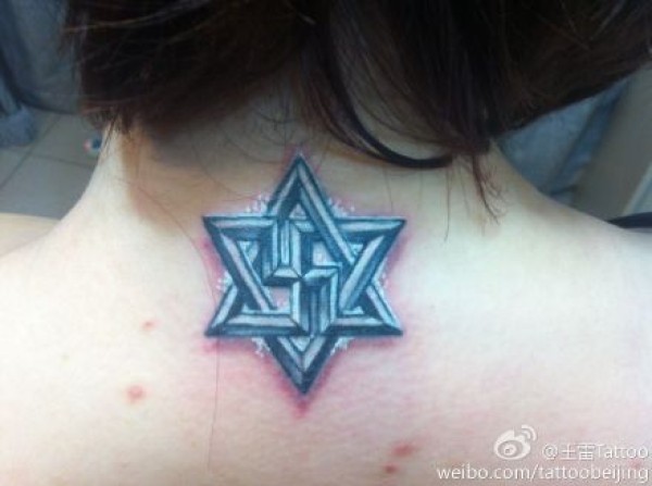 女孩子颈部彩色六芒星纹身图案_小清新纹身图案大全_纹身图吧