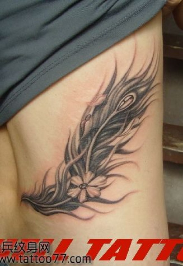 女孩子腰部好看唯美的羽毛纹身图案_小清新纹身图案大全_纹身图吧