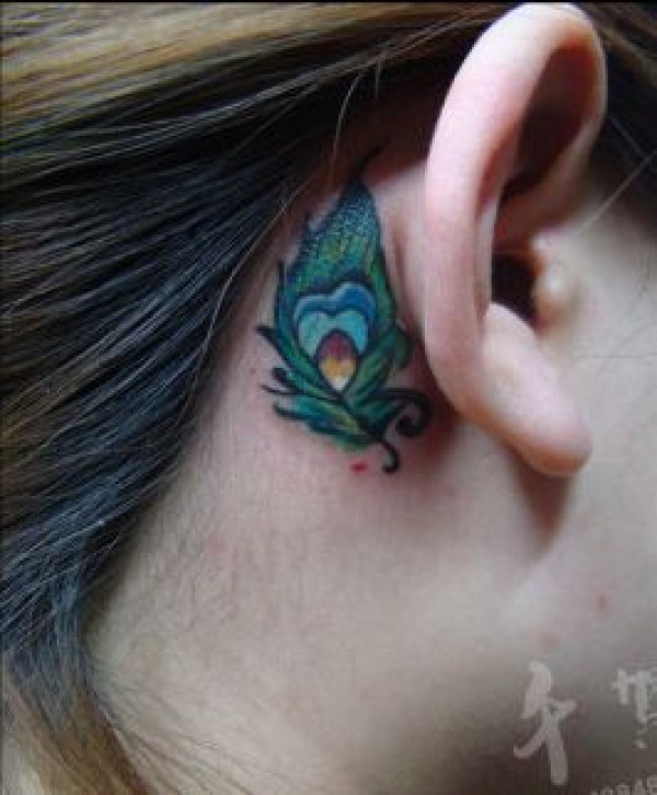 女孩子耳部小羽毛纹身图案_小清新纹身图案大全_纹身图吧