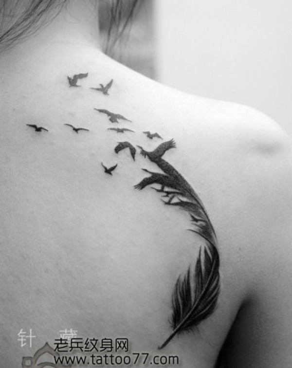 背部羽毛大雁纹身图案_小清新纹身图案大全_纹身图吧