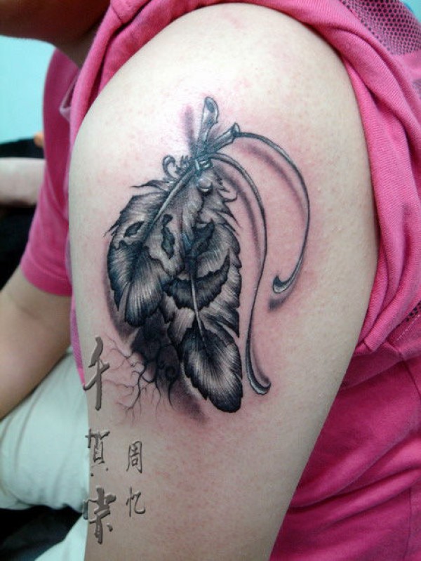 大臂纹身图案手臂地裂羽毛纹身图案图片大全_小清新纹身图案大全_纹身图吧
