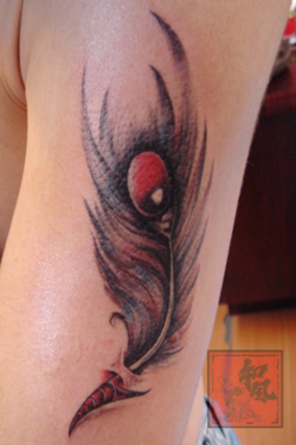 武汉纹身店大臂孔雀羽毛纹身图案图片_小清新纹身图案大全_纹身图吧