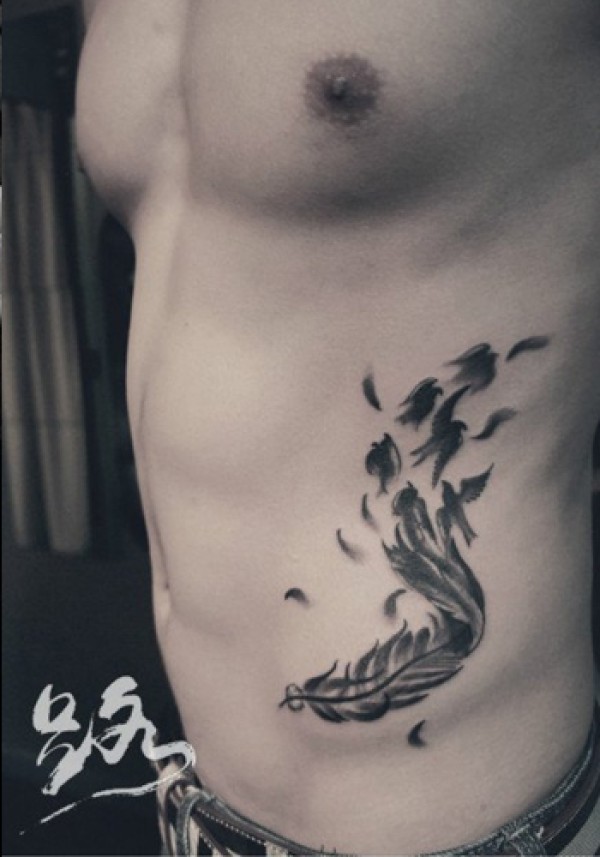 男生腹部羽毛纹身_小清新纹身图案大全_纹身图吧