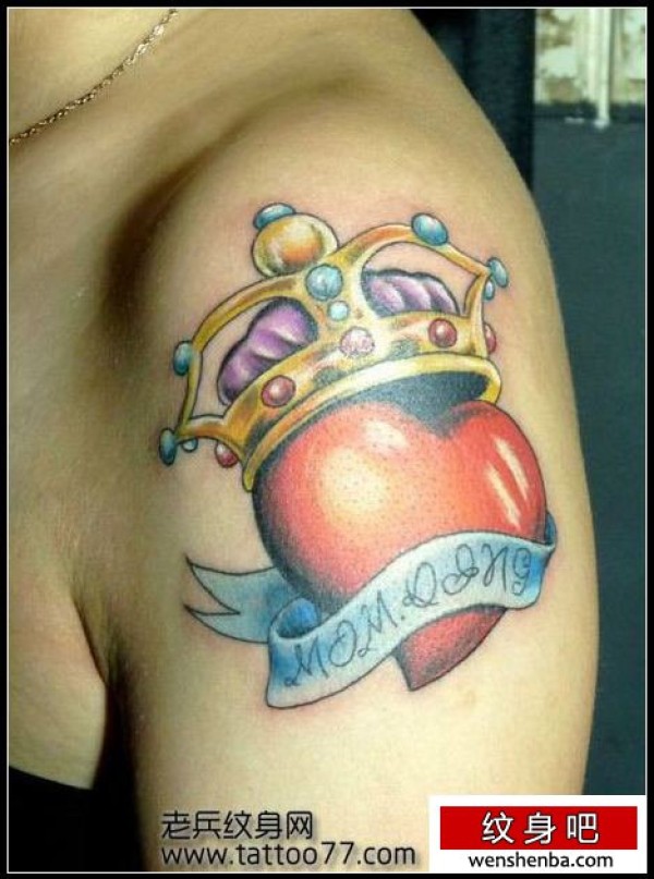 侧胸彩色皇冠与爱心纹身_小清新纹身图案大全_纹身图吧