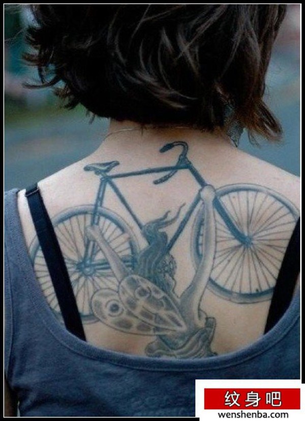 飞翔的精灵和单车纹身图案_小清新纹身图案大全_纹身图吧