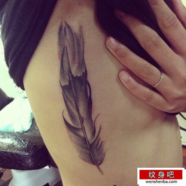 腹部羽毛纹身_小清新纹身图案大全_纹身图吧