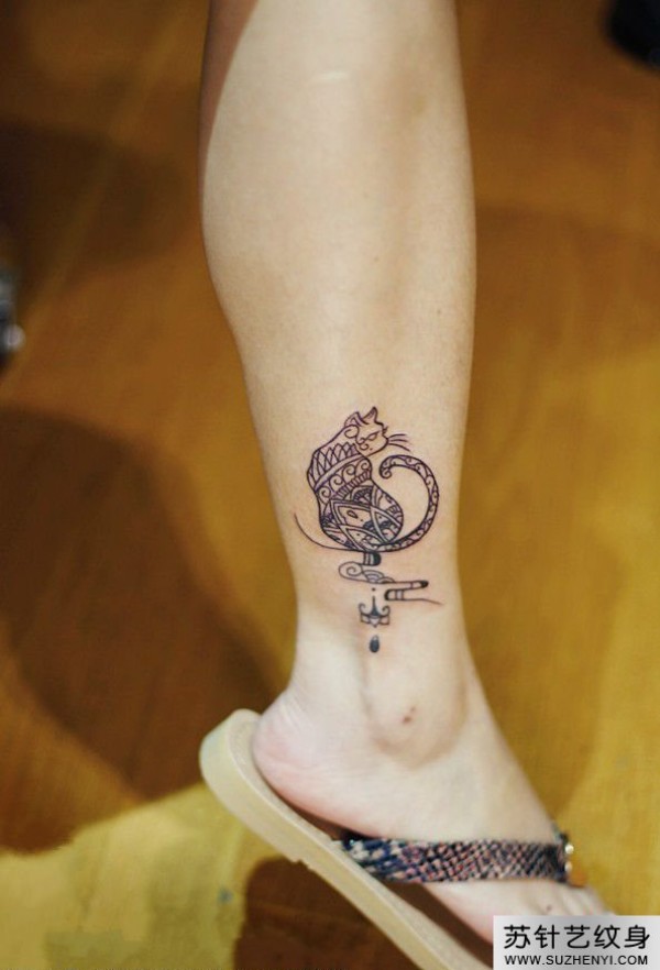 脚踝清新梵花猫纹身_小清新纹身图案大全_纹身图吧