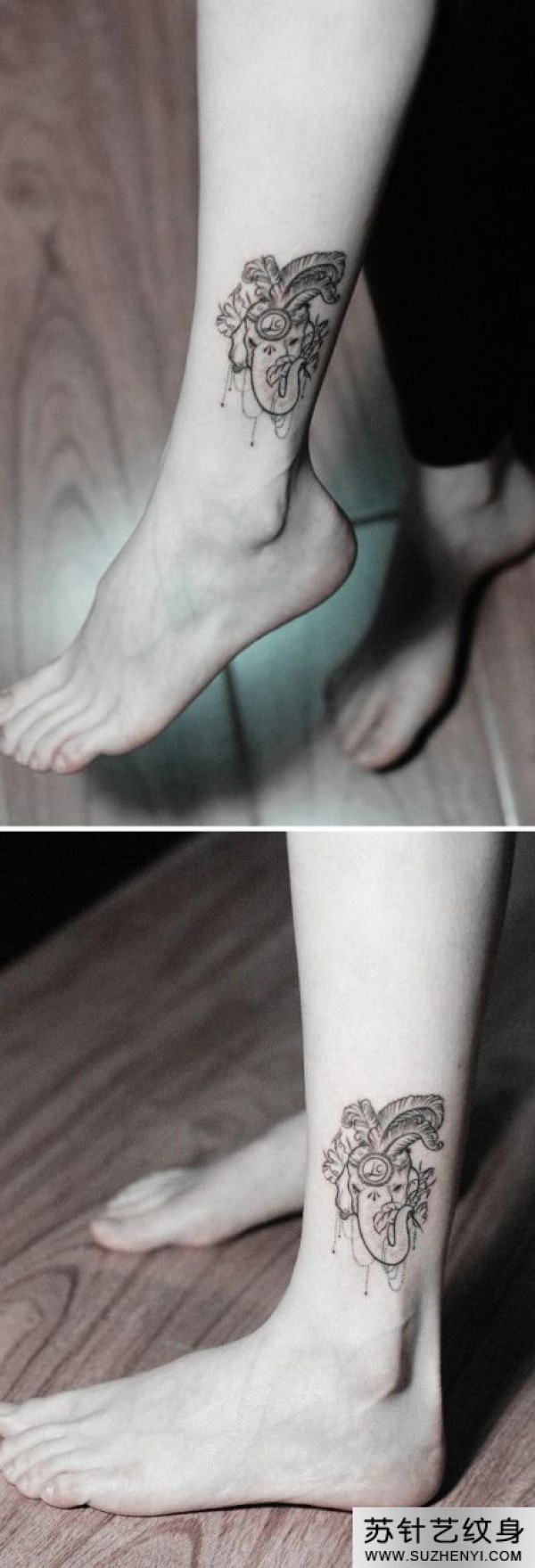 羽毛小象头像脚踝纹身_小清新纹身图案大全_纹身图吧