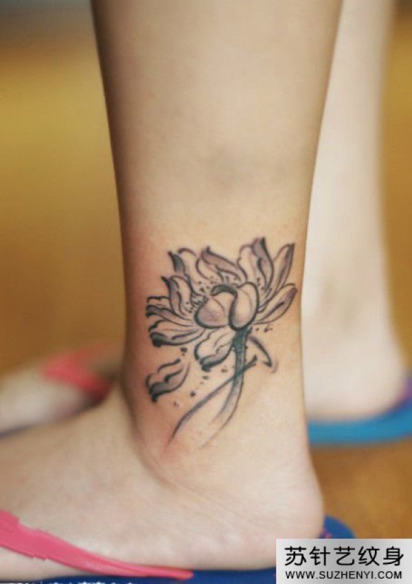 清新荷花脚踝个性纹身_小清新纹身图案大全_纹身图吧
