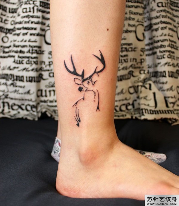 小清新麋鹿腿部纹身_小清新纹身图案大全_纹身图吧