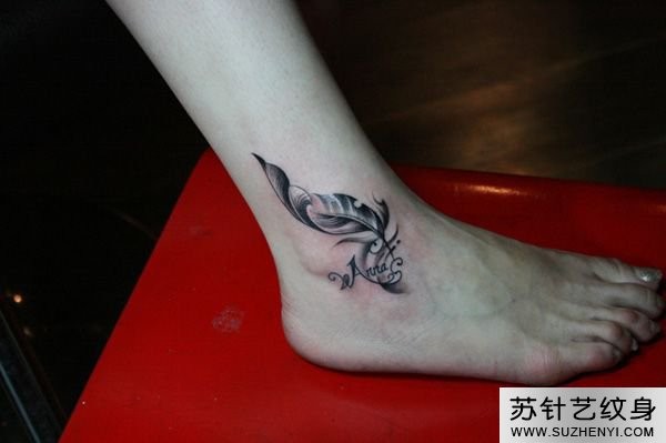 立体脚踝羽毛纹身_小清新纹身图案大全_纹身图吧