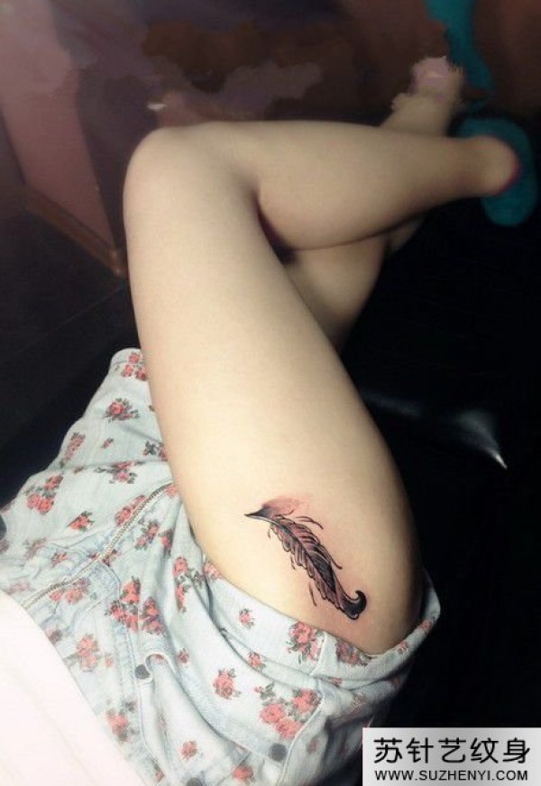 花白大腿羽毛纹身_小清新纹身图案大全_纹身图吧