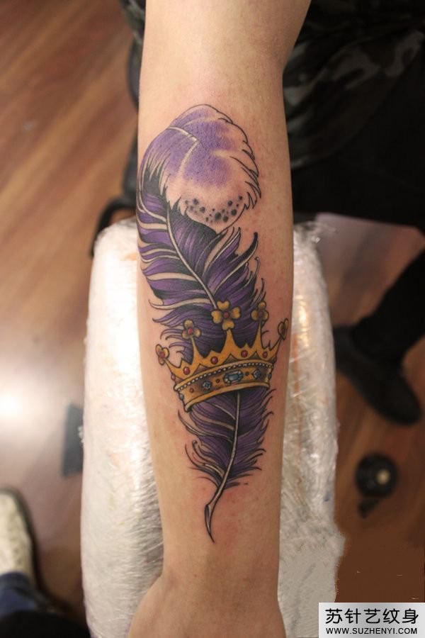 羽毛皇冠手臂纹身_小清新纹身图案大全_纹身图吧