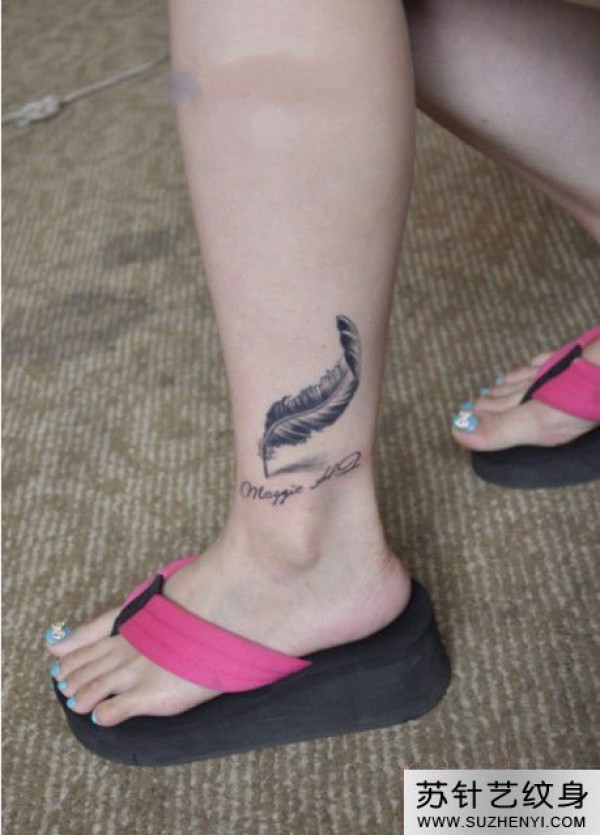 脚背彩色小羽毛纹身_小清新纹身图案大全_纹身图吧