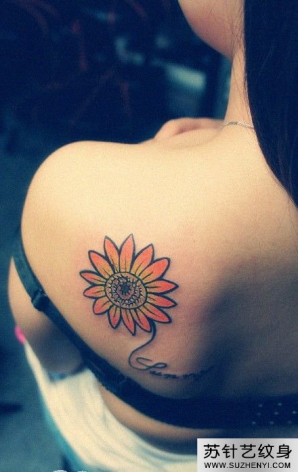 后肩向日葵清新纹身_小清新纹身图案大全_纹身图吧
