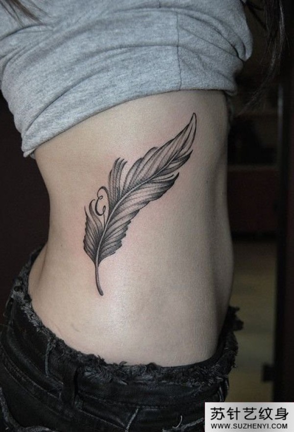 腹部羽毛纹身_小清新纹身图案大全_纹身图吧