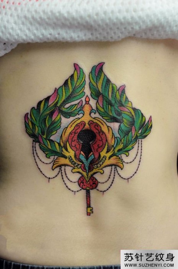 羽毛钥匙孔腰部纹身_小清新纹身图案大全_纹身图吧