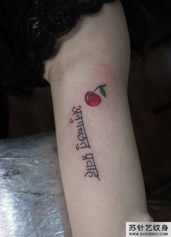 清新藏文彩色小樱桃时尚纹身_小清新纹身图案大全_纹身图吧