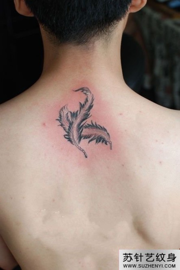 后背简介的羽毛男生纹身_小清新纹身图案大全_纹身图吧