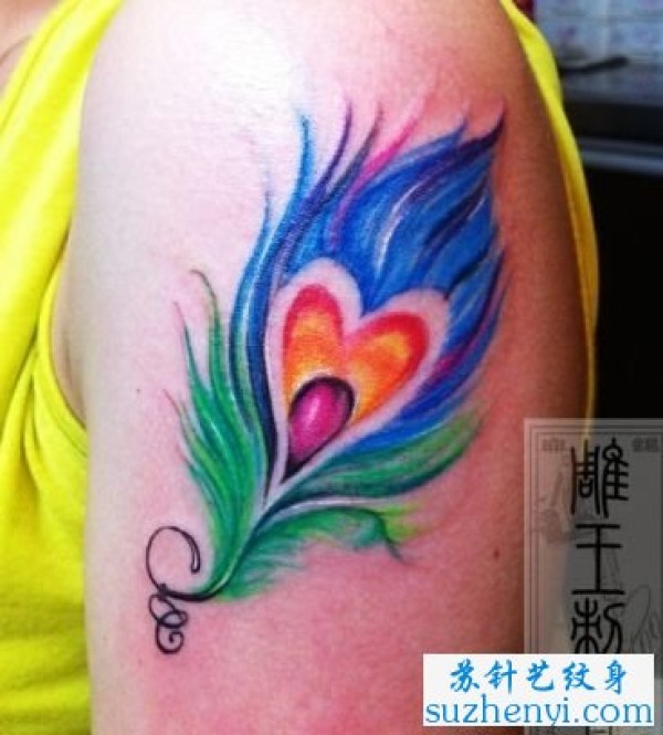 艳丽的彩色羽毛纹身图案_小清新纹身图案大全_纹身图吧