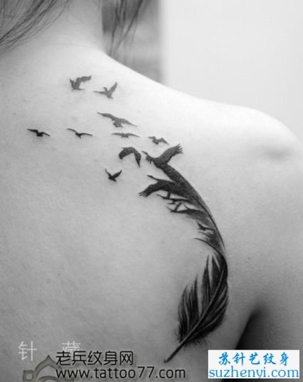 时尚的羽毛大雁纹身图案_小清新纹身图案大全_纹身图吧