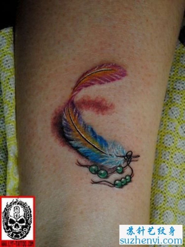 女孩子喜欢彩色羽毛纹身图案_小清新纹身图案大全_纹身图吧