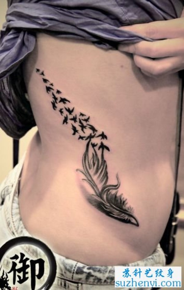 腹部羽毛纹身_小清新纹身图案大全_纹身图吧
