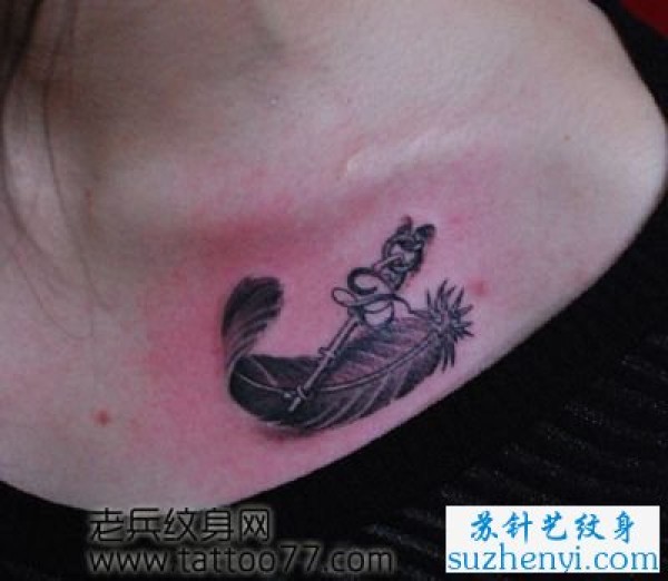 胸部羽毛钥匙纹身_小清新纹身图案大全_纹身图吧