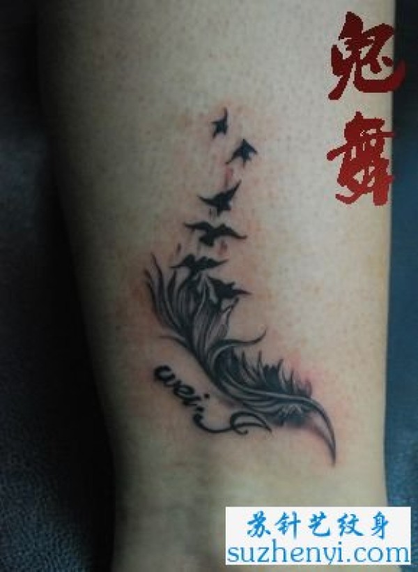 腿部流行的羽毛纹身图案_小清新纹身图案大全_纹身图吧