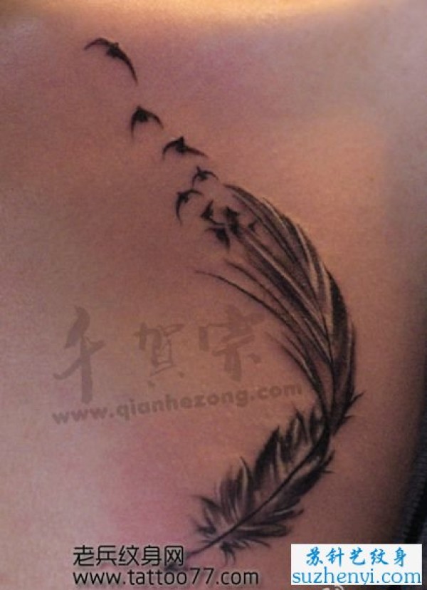 流行好看的羽毛小鸟纹身图片_小清新纹身图案大全_纹身图吧