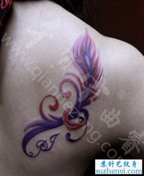 女孩子喜欢的彩色羽毛纹身图案_小清新纹身图案大全_纹身图吧