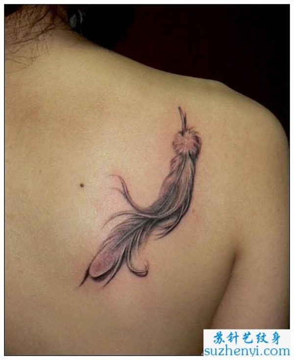 纹身图案经典美女背部羽毛纹身图案图片_小清新纹身图案大全_纹身图吧