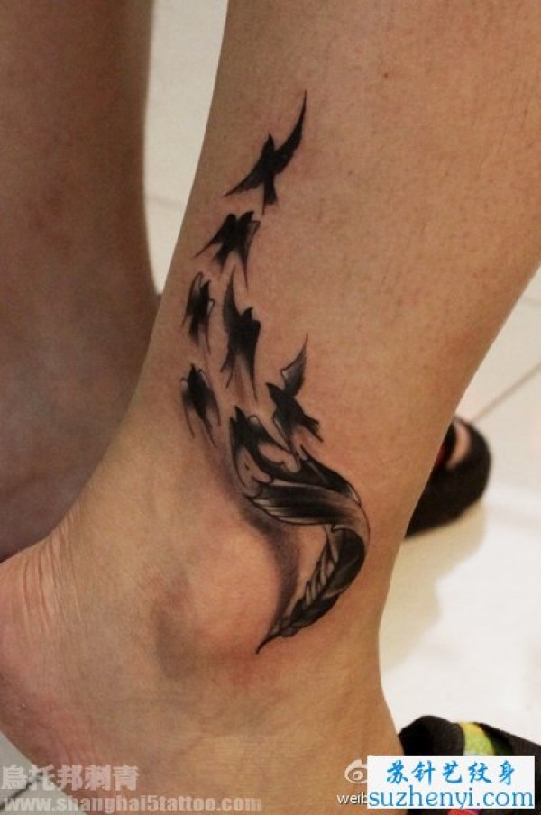 羽毛纹身腿部羽毛小鸟纹身图案纹身_小清新纹身图案大全_纹身图吧