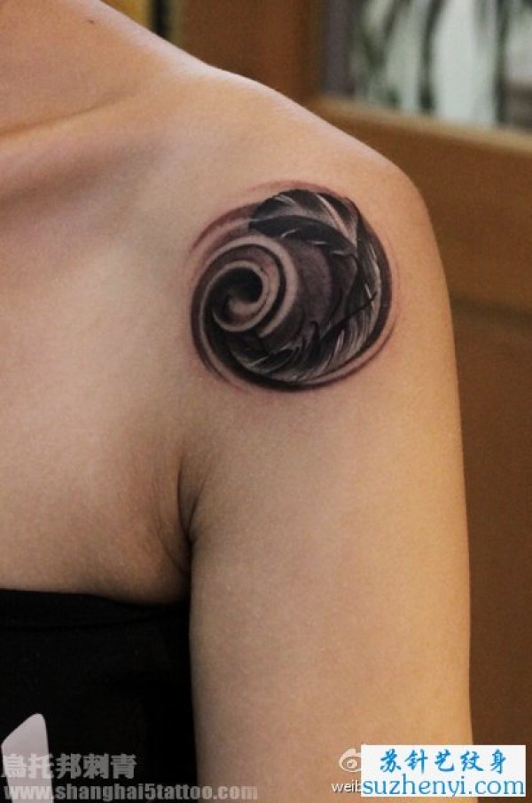 肩部羽毛纹身图案纹身图片_小清新纹身图案大全_纹身图吧