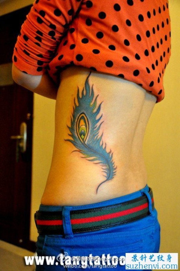 腰部时尚精美的羽毛纹身图案_小清新纹身图案大全_纹身图吧